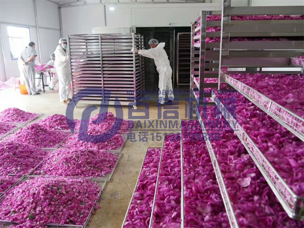 該項目位于山東平陰縣,為玫瑰花烘干。項目采用一臺6P的烘干除濕一體機,一次可以烘干新鮮玫瑰花1200斤,烘干時間約為35小時,整個烘干過程所消耗的電能是約210度電,電費按1.0元/度計算,即210元。在烘干成本上比柴油鍋爐烘干房節(jié)能50%以上,比電熱烘干房節(jié)能40%以上,比煤鍋爐節(jié)能35%以上。在烘干的過程中,提取玫瑰花細(xì)胞液,1000斤的新鮮玫瑰花朵可以提取300斤左右的細(xì)胞液。